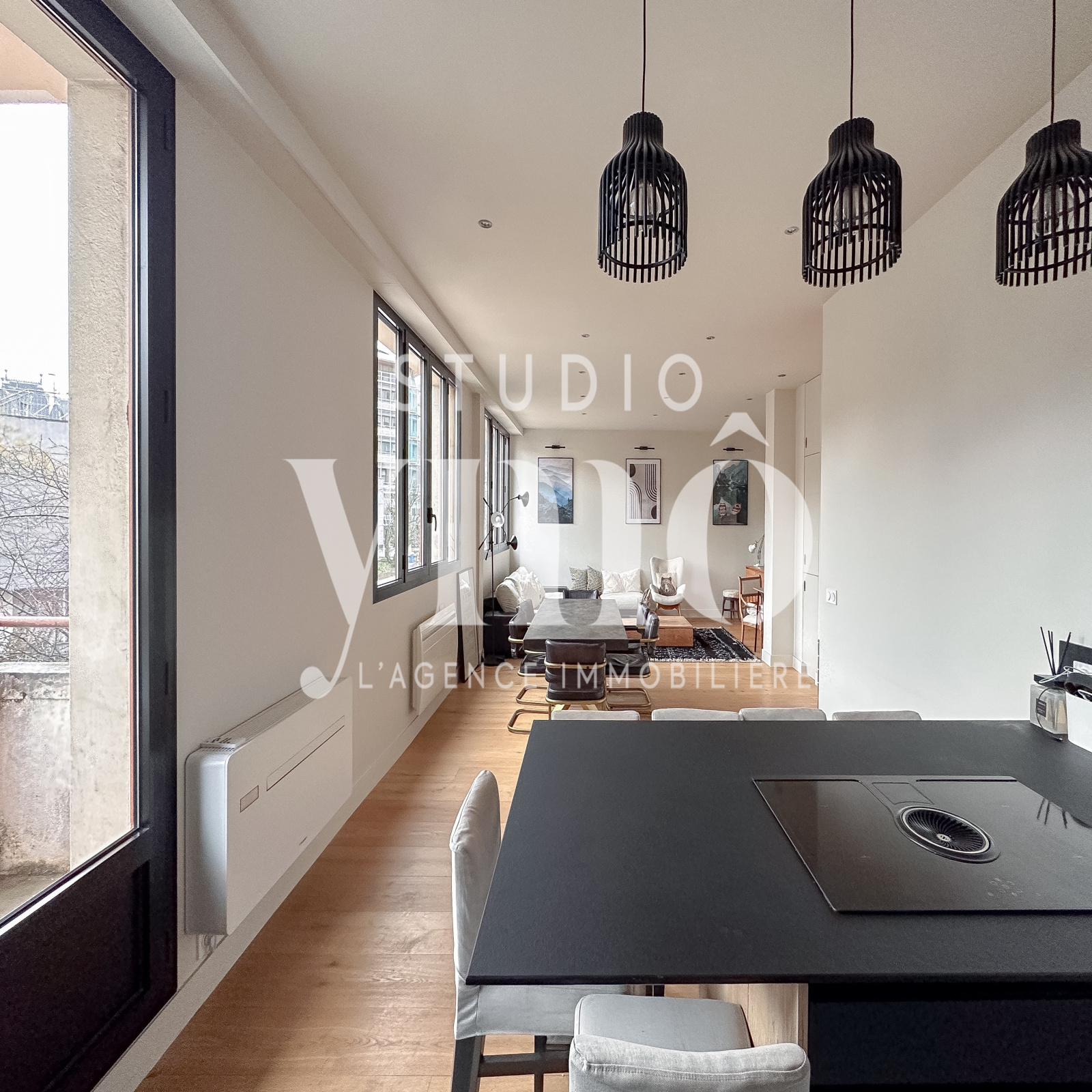 . Spacieuse pièce de vie de 45 m² avec cuisine ouverte donnant sur un balcon sans vis à vis direct