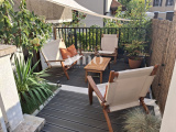 L’appartement principal se compose de deux belles chambres, d’un spacieux séjour baigné de lumière, d’une élégante salle d’eau refaite à neuf en 2024, de WC séparés et d’une cuisine fonctionnelle. Trois balcons ainsi qu’une grande terrasse permettent de profiter pleinement des extérieurs à tout moment de la journée.
