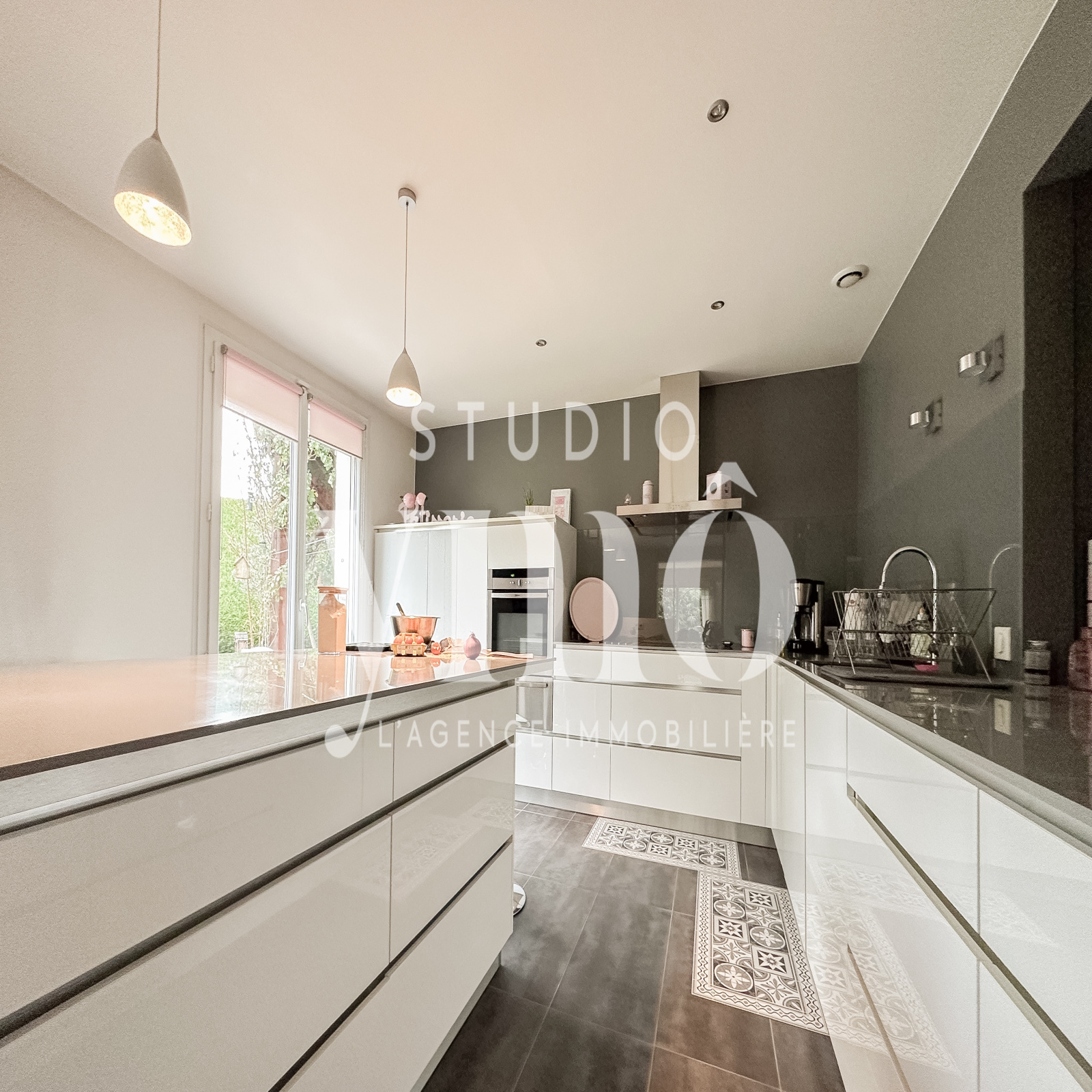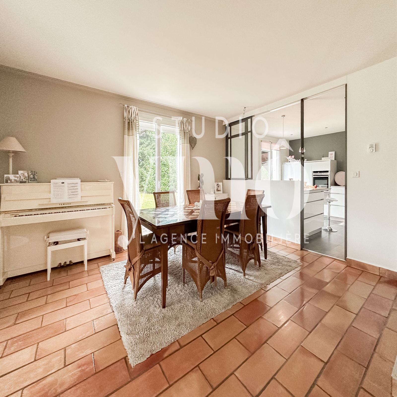 La cuisine fermée, véritable chef-d’œuvre de design, est équipée de verrières contemporaines qui peuvent s’ouvrir entièrement, transformant l’espace en une pièce aérée, idéale pour partager un instant convivial avec vos proches.
