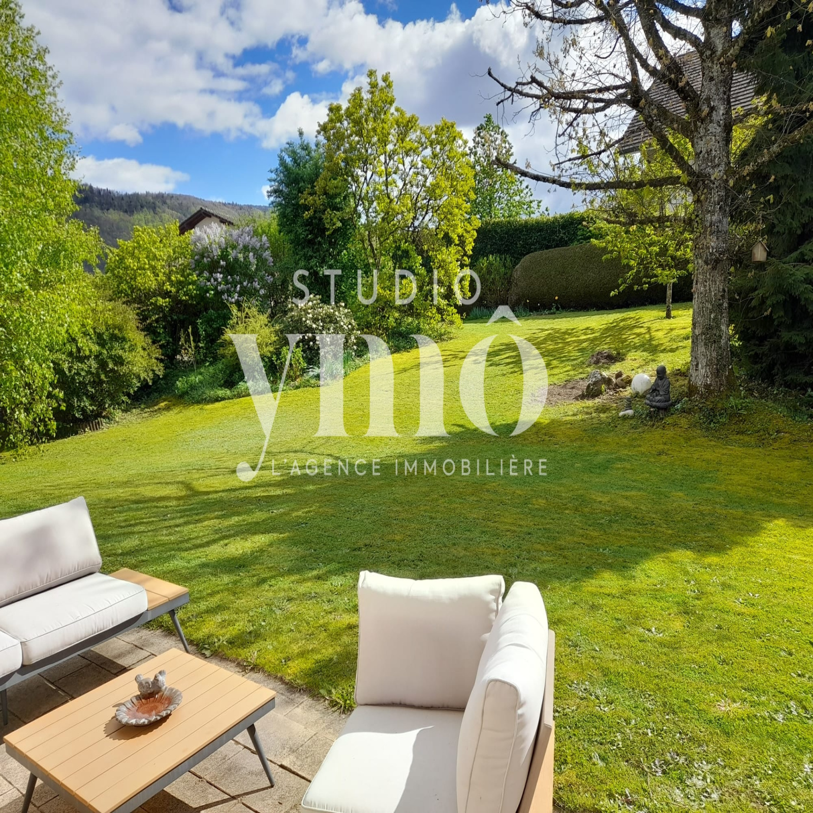 À l’extérieur, profitez du grand jardin arboré, un véritable havre de paix où se mêlent sérénité et nature. Parfait pour des moments de convivialité, des jeux en famille ou des instants de détente à l’ombre des arbres.