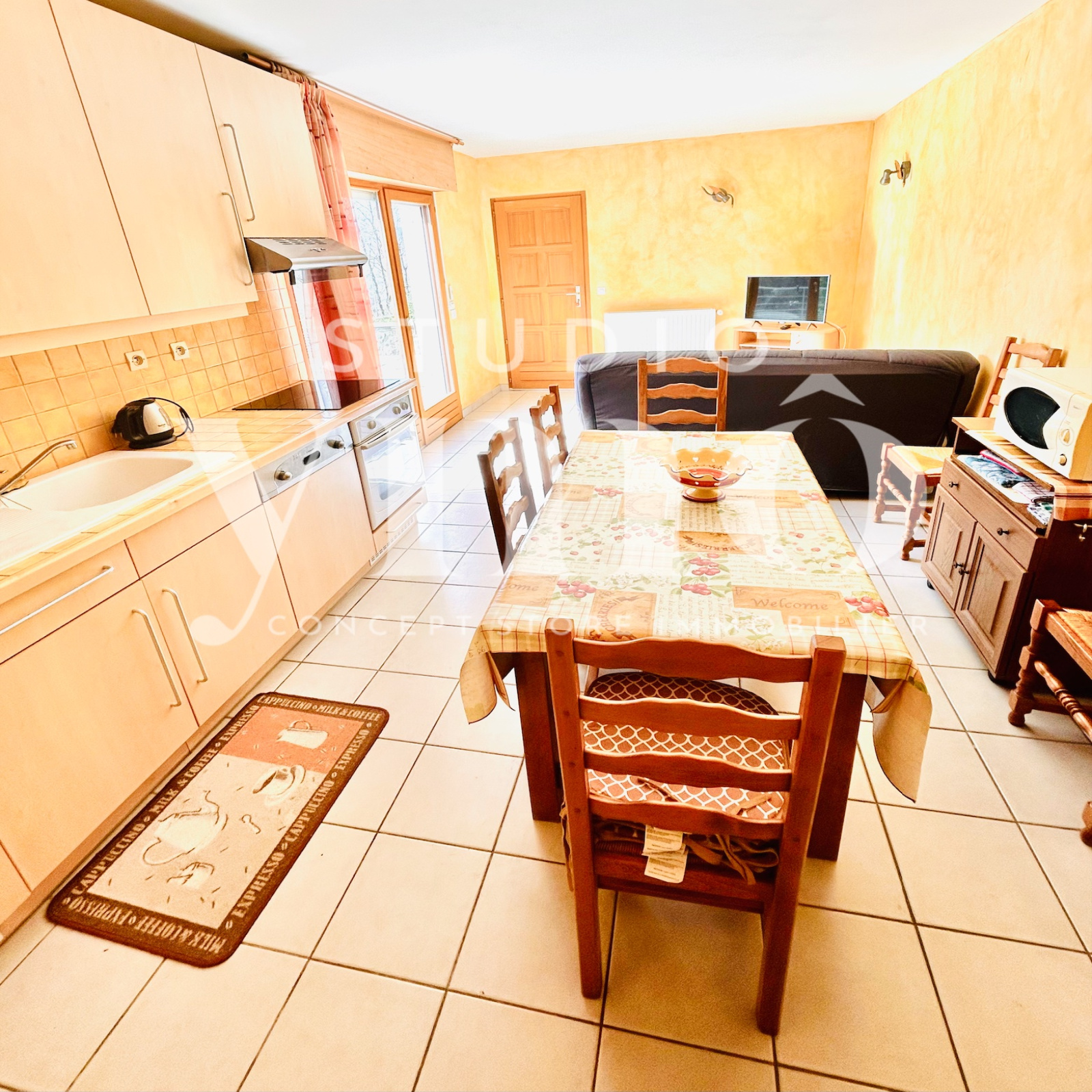 Au 1 étage, un appartement de type 2 d'environ 60 m2, composé d'une belle pièce de vie lumineuse avec cuisine équipée donnant sur une terrasse d'environ 40m2, une grande chambre de plus de 22 m2, un bureau et une salle d'eau avec toilette. L'accès de l'appartement est possible par la maison pour par une entrée indépendante